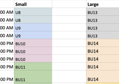 In case you want to verify if our training will conflict with the leagues games on Saturday at Allsport, below are the estimated time slots for the Boys’ league games. Girls League games are on Sundays.
